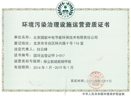 當前位置: 國能中電公司動態(tài)> 我司喜獲環(huán)保部《環(huán)境污染治理設施運營資質甲級證書》