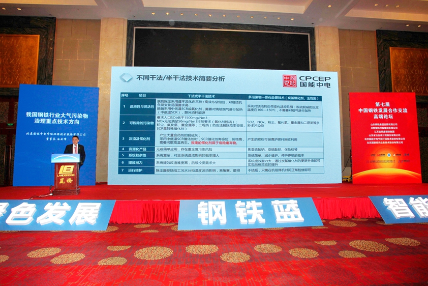 北京國(guó)能中電節(jié)能環(huán)保技術(shù)股份有限公司董事長(zhǎng)白云峰先生以“我國(guó)鋼鐵行業(yè)大氣污染物治理重點(diǎn)技術(shù)方向”為題做了報(bào)告。