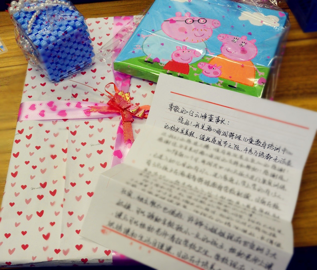 寫信的人是海口雨潤特殊兒童教育培訓(xùn)中心校長吳美林,禮物則是由學(xué)校的自閉癥兒童及智力發(fā)育遲緩兒童親手制作,一同寄過來的還有一沓厚厚的照片,那是學(xué)校孩子們接受教育和康復(fù)訓(xùn)練的活動掠影。