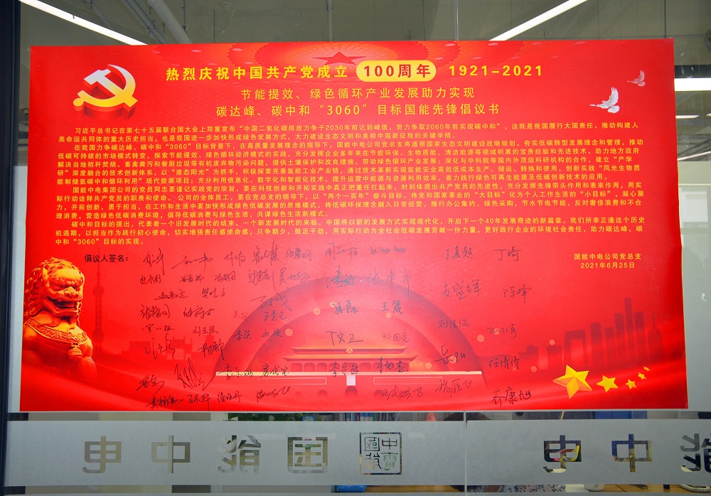 作為能源環(huán)保領(lǐng)域有知名影響力和行業(yè)引領(lǐng)性的企業(yè),國(guó)能中電積極踐行國(guó)家“碳中和”生態(tài)戰(zhàn)略,近年來(lái)大力發(fā)展生物質(zhì)能、風(fēng)光生物質(zhì)制儲(chǔ)氫一體化等清潔能源項(xiàng)目,助力國(guó)家“3060” 目標(biāo)的實(shí)現(xiàn)。在建黨100周年的良好時(shí)機(jī),國(guó)能中電黨總支發(fā)起了黨員社會(huì)責(zé)任倡議,號(hào)召全體黨員及廣大員工以碳達(dá)峰、碳中和“3060”目標(biāo)為指引,夯實(shí)低碳轉(zhuǎn)型發(fā)展理念,推動(dòng)綠色循環(huán)經(jīng)濟(jì)模式創(chuàng)新實(shí)踐,發(fā)揮企業(yè)多年來(lái)在節(jié)能環(huán)保、生物質(zhì)能、清潔能源等領(lǐng)域積淀的寶貴經(jīng)驗(yàn)和先進(jìn)技術(shù),踐行企業(yè)社會(huì)責(zé)任,推動(dòng)綠色產(chǎn)業(yè)發(fā)展,助力碳達(dá)峰、碳中和“3060”目標(biāo)的實(shí)現(xiàn)。
