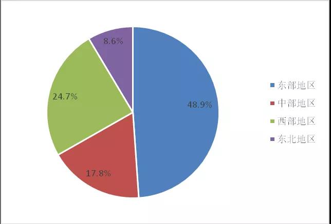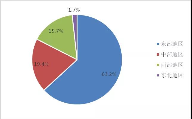 圖4. 2018年列入統(tǒng)計(jì)的各區(qū)域環(huán)保企業(yè)數(shù)量占比